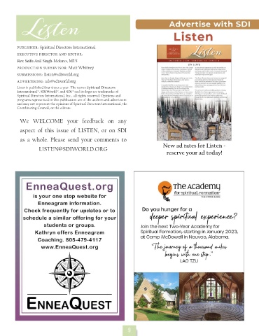 Listen is published four times a year. The names Spiritual Directors