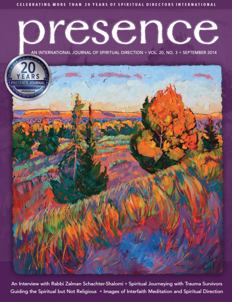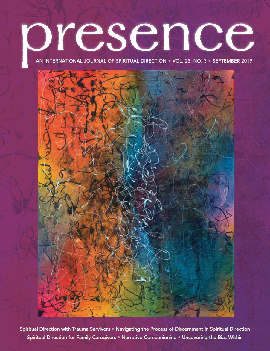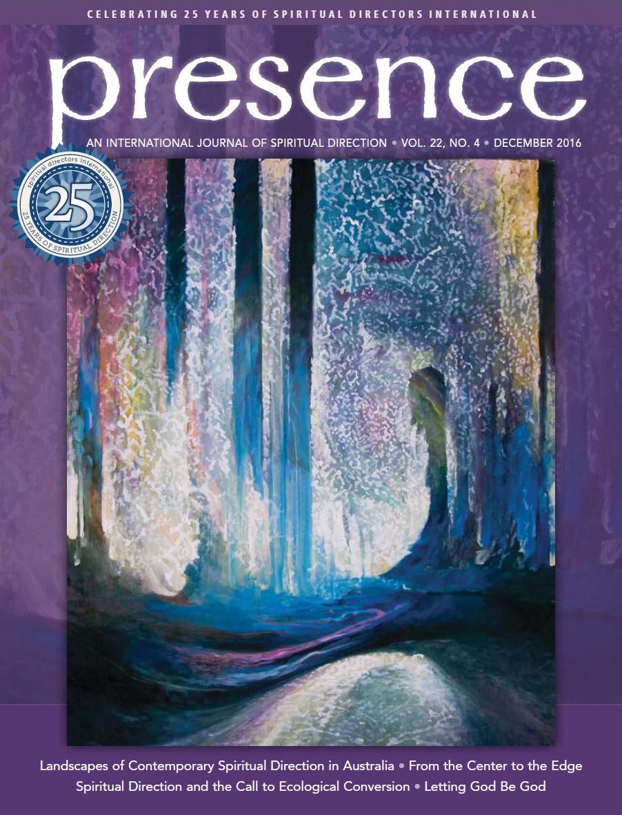 Presence: An International Journal of Spiritual Direction + Companionship is published in May and November. Presence offers a forum among diverse people and spiritual traditions for the exploration of present and future trends in the art and practice of spiritual direction. Presence is grounded in the belief that our deepest calling is to be present to one another as we share the gift of ourselves. Presence strives to articulate the essential elements of contemplative practices, formation, and training; to encourage accountability; and to develop clear ethical guidelines. Presence supports a global contemplative dialog of spiritual care and compassion for others, ourselves, and the whole cosmos. ISSN 1081-7662.