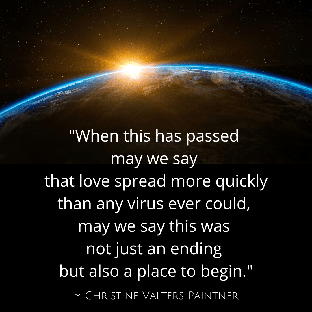 When this has passed may we say that love spread more quickly than any virus ever could, may we say this was not just an ending but also a place to begin.