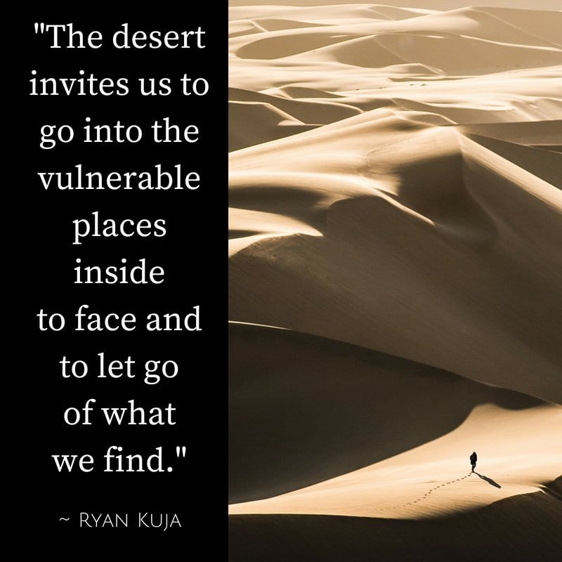 The desert invites us to go into the vulnerable places inside to face and to let go of what we find, to leave the God we know and meet a God we don’t know and can’t possibly imagine.